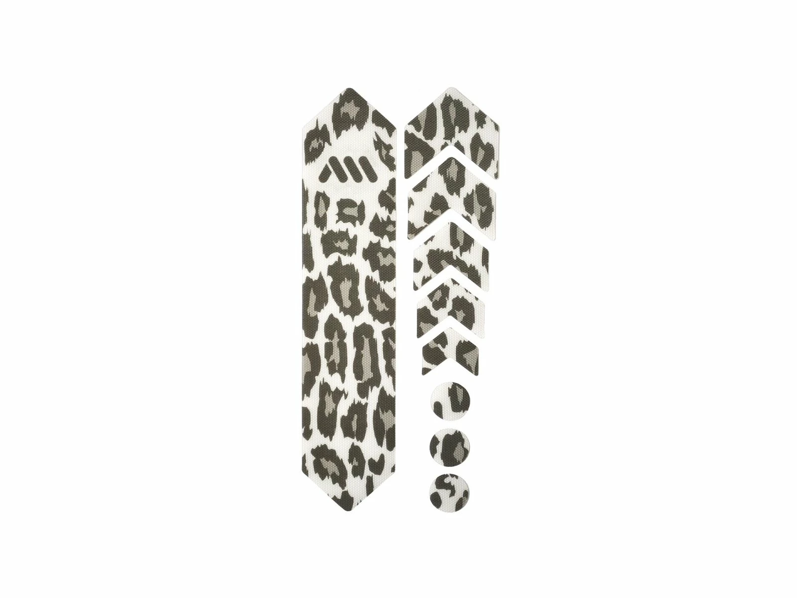 - 9 parts for a universal protection system: 1 big part for the down tube; 5 arrow parts for extending the down tube protection or for the chainstay or for top tube; 3 circles for cable wear protection.