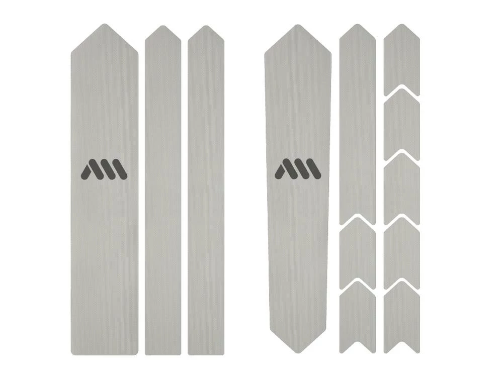 - 12 parts for a universal protection system: 1 big part for the downtube, 2 long arrows for the fork or the seat stays, 1 big part for the top tube or the seat tube, 8 arrow parts for cable rub protection and areas where tire fits tight with the frame.