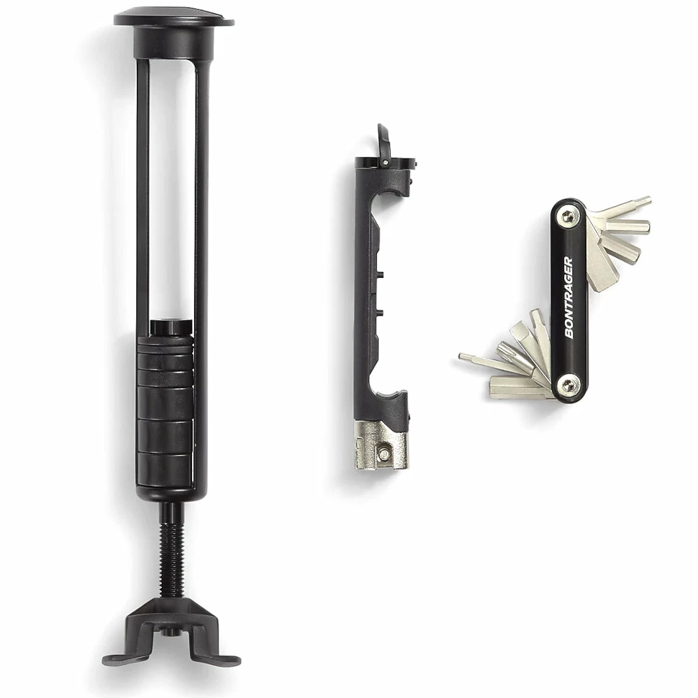 Ude af syne, men altid klar. Med dette system, og et uundværligt værktøjssæt til reparation i terrænet, er du altid sikker på at nå fra start til slut. Der er nem adgang til værktøjet via en vippelås, men når du cykler, er det stuvet sikkert af vejen, så du kan koncentrere dig om at nyde cyklingen.