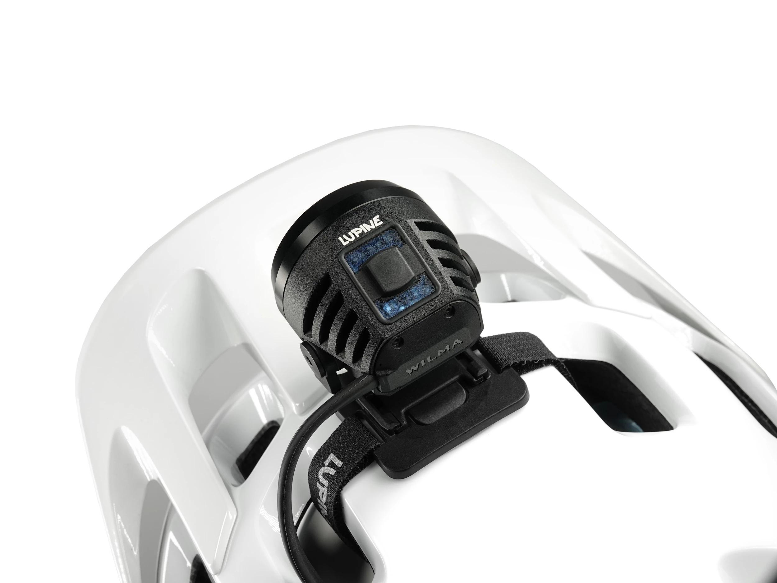 The Wilma as helmet lamp with SmartCore battery, Bluetooth remote control, app support and full 3600 lumens.