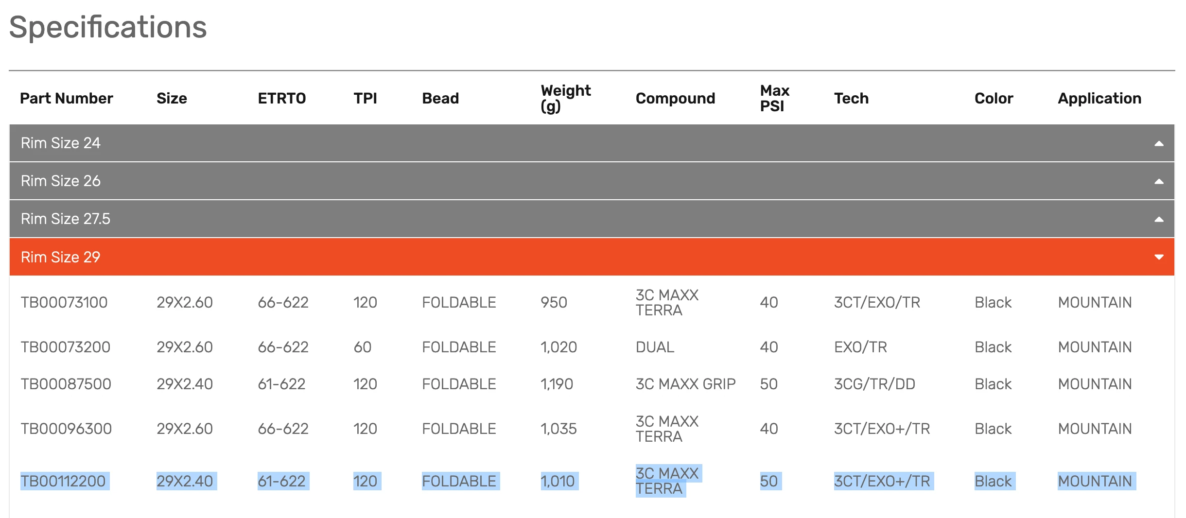 - Wide trail (WT) casing specs are optimized for 30-35mm inner width rims