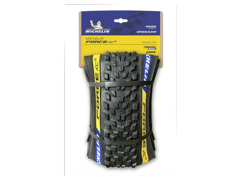 The MICHELIN FORCE XC2 tire enhances control in a wide range of riding conditions thanks to the updated tread pattern with taller, wide-spaced knobs.