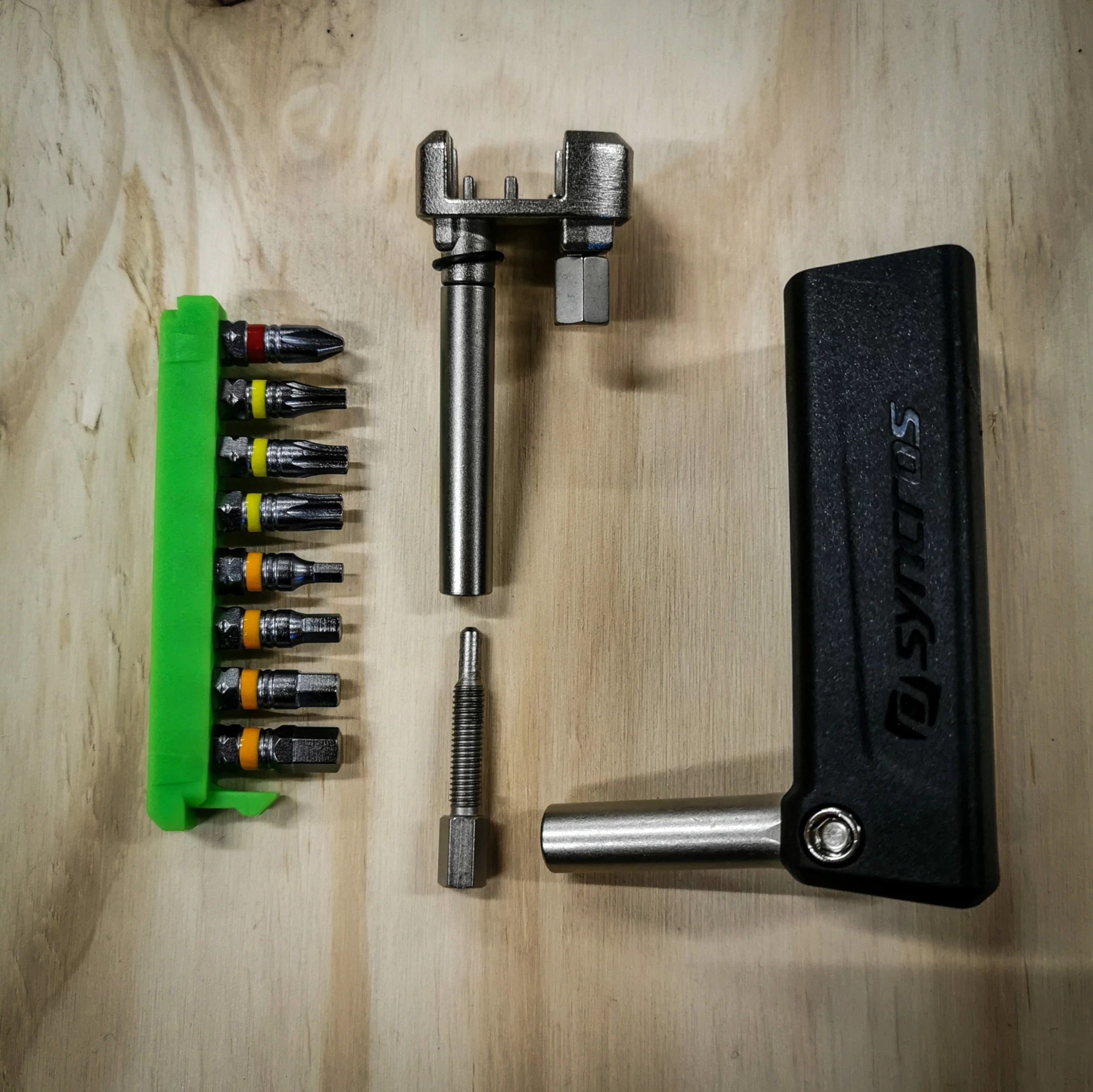 - Our ergonomic Greenslide tool features a fold out bit holder to allow for the perfect leverage. With 11 integrated tools including chain tool, a quicklink holder, TORX and HEX bolts it’s the complete package. Further customize your set to your perfect bit set using our aftermarket kits.