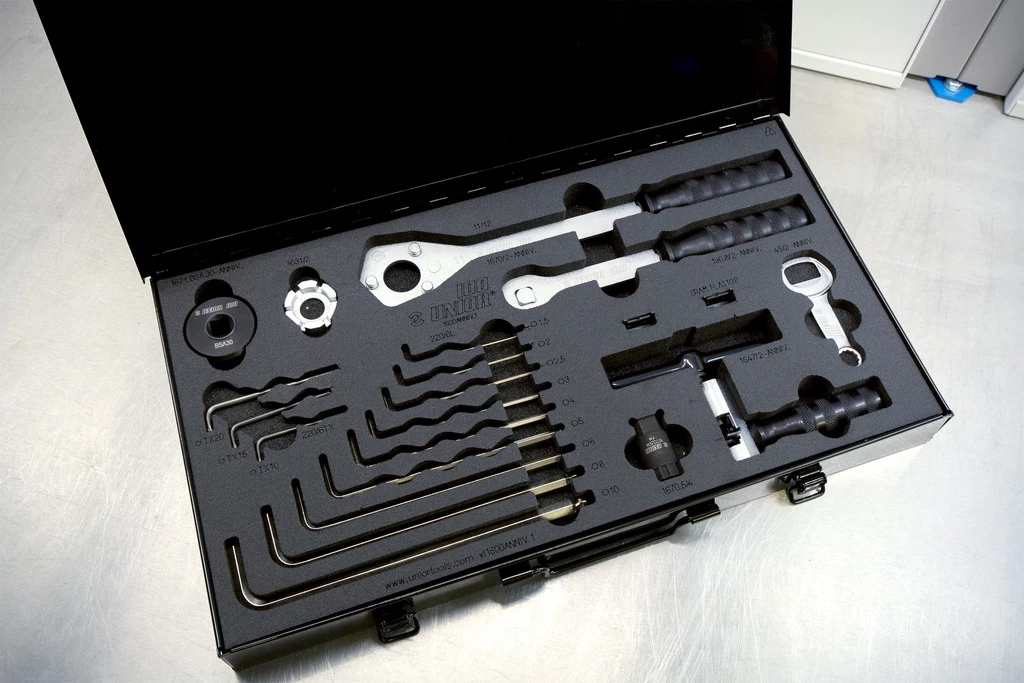 - Unique to the tools included in the 100th Anniversary Set are aluminum handles in a black anodized finish. The tools are organized in a laser-cut SOS foam tool tray for a perfect fit in the matching black steel case, which also features our 100th-anniversary logo on the top. Inside you will find a great selection of bike tools that will cover most basic service operations on a bicycle. And yes, a bottle opener is included.